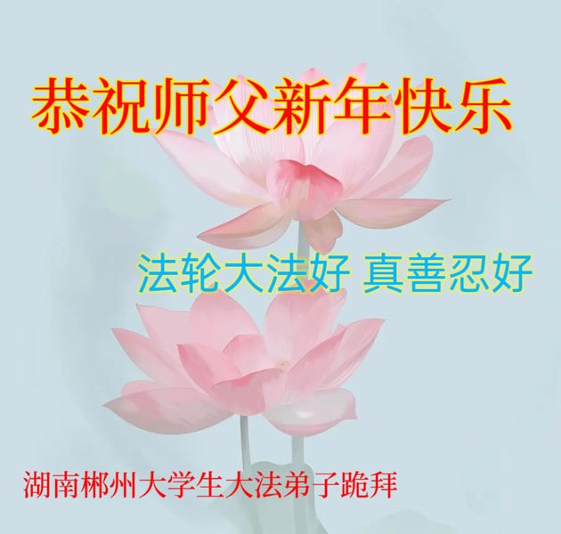 恭祝师尊新年快乐! 弟子一定修好自己,不愧对大法弟子称号! 河南省新乡市高校大法弟子全家人敬上 吉林省长春高校大法弟子恭祝师尊新年快乐!