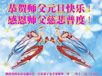 【明慧网二零二二年十二月三十日】 陕西省教育系统全体大法弟子恭祝慈悲伟大的师尊新年快乐!