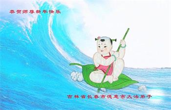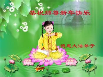 师父传法三十一载,救度宇宙无量无际的众生。为得救的众生承受罪业。爱护众生,保护众生,得救的众生无不感谢师父的佛恩浩荡。师父伟大,法伟大!在师父的保护和鼓励下,风风雨雨走过了二十多年的修炼里程,真是感慨万千,不知道师父为我这个不争气的弟子承受了多少,为我操尽了心。感谢师父的慈悲苦度,不弃之恩。感谢师父为我净化身体,给了我一个健康的身体,无病一身轻。二十多年没吃一粒药。在真、善、忍的法理指导下,知道了做人不是目地,是返本归真。在修炼中履行自己的使命,助师正法,救度众生。在救人的过程中,提高了心性,转变了观念,遇事会向内找了。在师父的慈悲保护下,遇难呈祥,好事多多。有师父真好!大陆大法弟子想念师父,盼望师父早日和大陆大法弟子团聚。 谢谢师父!师父元旦好!师父元旦快乐! 吉林省长春市德惠市大法弟子恭祝师父新年快乐!
