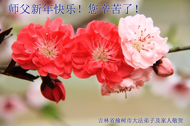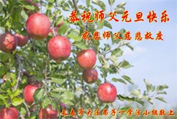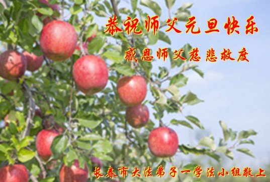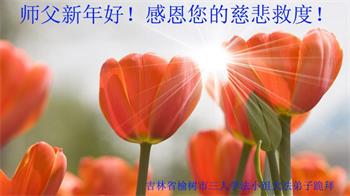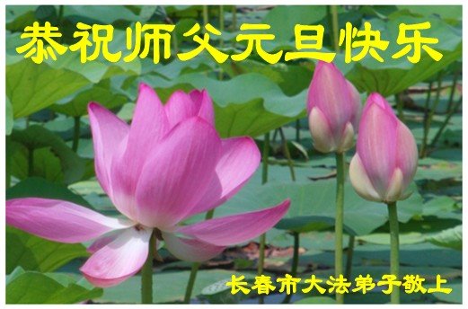 师父您辛苦了!祝您元旦快乐! 弟子们要比学比修,尽快提高,在正法定最后阶段做好救度众生的事,请师父放心。 吉林省长春市榆树三人学法小组大法弟子敬贺 吉林省长春市大法弟子恭祝师父元旦快乐!