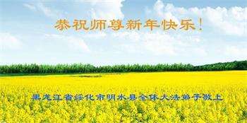 黑龙江省牡丹江市绥阳镇一学法小组大法弟子敬祝慈悲伟大的师父新年快乐!