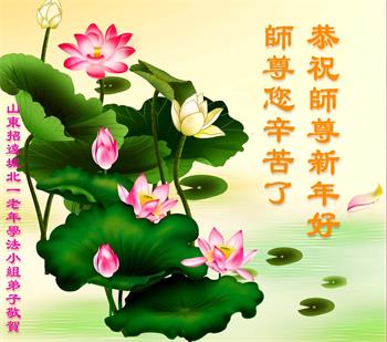 师尊您好,虽然在修炼的路上磕磕碰碰,在提高心性的时候有时好、有时差一些。但我们心中有法,始终坚持师尊给我们留下的集体修炼环境。在学法中不断的提高,遇到矛盾向内找,互相配合,形成了一个整体,沐浴在佛恩浩荡的慈悲中。 在元旦即将到来之际,我们学法小组全体大法弟子恭祝师尊元旦快乐! 山东省青岛平度市一学法小组全体大法弟子恭祝师尊元旦快乐!