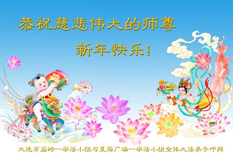师尊您好!您辛苦了! 弟子们非常想念您,无限感恩师尊的慈悲苦度,感恩师尊对弟子们的时时看护!我们一定听师尊的话,踏踏实实的修好自己,去人心,修成无私无我先他后我的正觉,助师正法,讲清真相多救人,兑现我们的神圣誓约,圆满随师还。 敬拜恩师! 辽宁省朝阳市建平县一学法小组六名大法弟子恭祝 2022年12月10日 辽宁省大连市两个学法小组大法弟子恭祝慈悲伟大的师尊新年好!