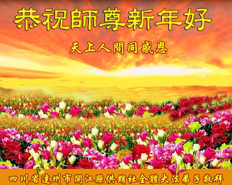 新的一年将临,师尊带领弟子们又走过了一年!一切都是按照师尊的安排在進行,一点也不乱。坚信师尊,坚信法,走向圆满! 值此新年之际,我们全体大法弟子恭贺师尊新年快乐! 四川省达州市开江县供销社全体大法弟子恭祝师尊新年好!