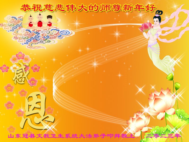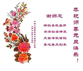 恭祝慈悲伟大的师尊新年好! 山东省黄金系统大法弟子跪拜敬上 大陆疾控系统全体大法弟子恭祝师尊新年快乐!