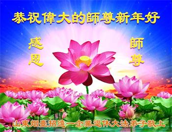 山东烟台招远一企业退休大法弟子恭祝伟大的师尊新年好!