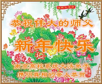 弟子遵循师父的教诲:多学法,学好法,讲清真相多救人。请师父放心,让师父欣慰!弟子再次恭祝师父新年好! 南京高校系统大法弟子携明真相的亲人恭祝伟大的师父新年快乐!