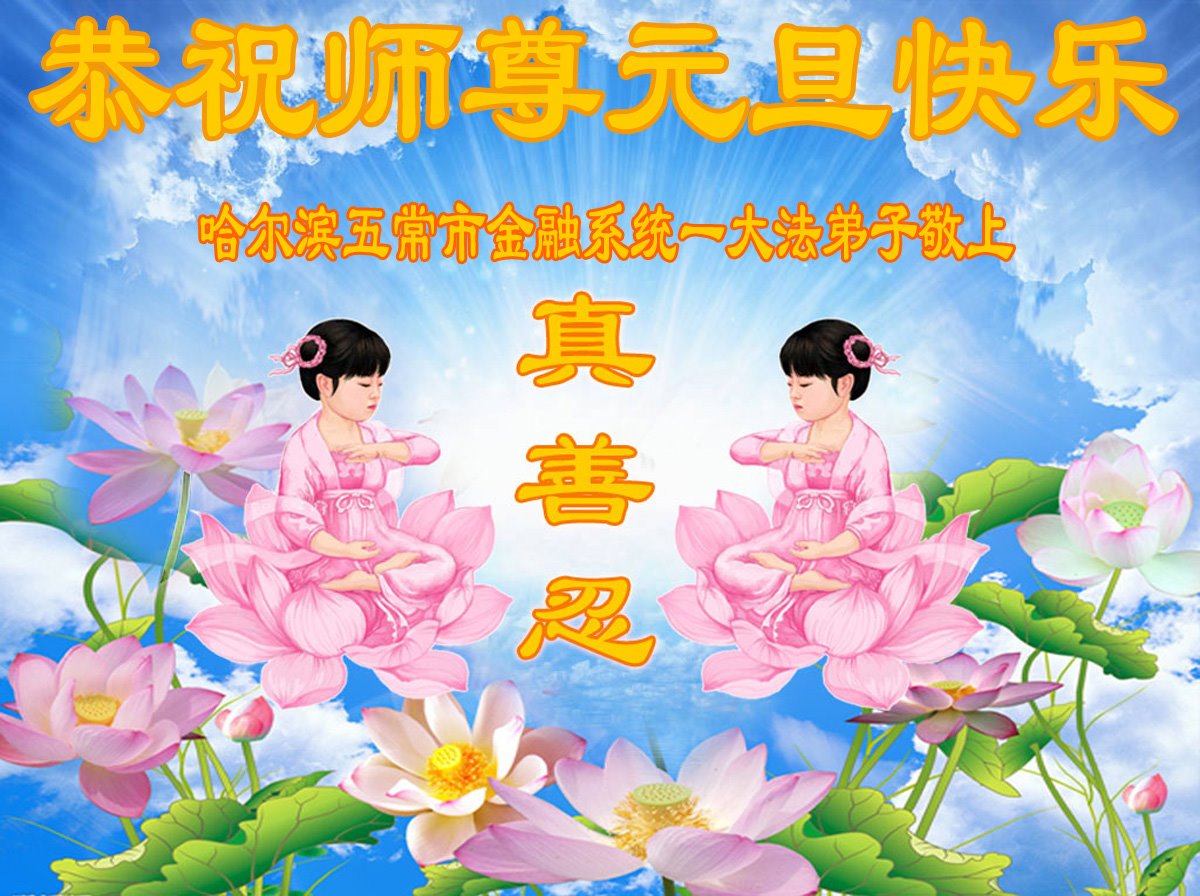 哈尔滨市五常市金融系统一大法弟子恭祝师尊元旦快乐!