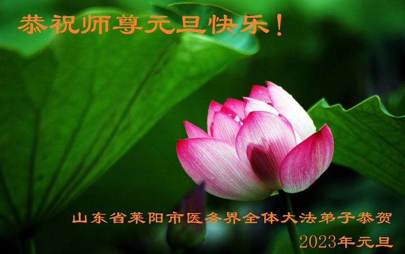 师父您好!师父辛苦了!谢谢师父的慈悲救度! 在以后正法不多的时间里,弟子一定更加精進,实修自己不放松,多学法,学好法,配合好整体多救人,做好三件事,跟师父回家。 山东省莱阳市医务界全体大法弟子恭祝慈悲伟大的师尊元旦快乐!