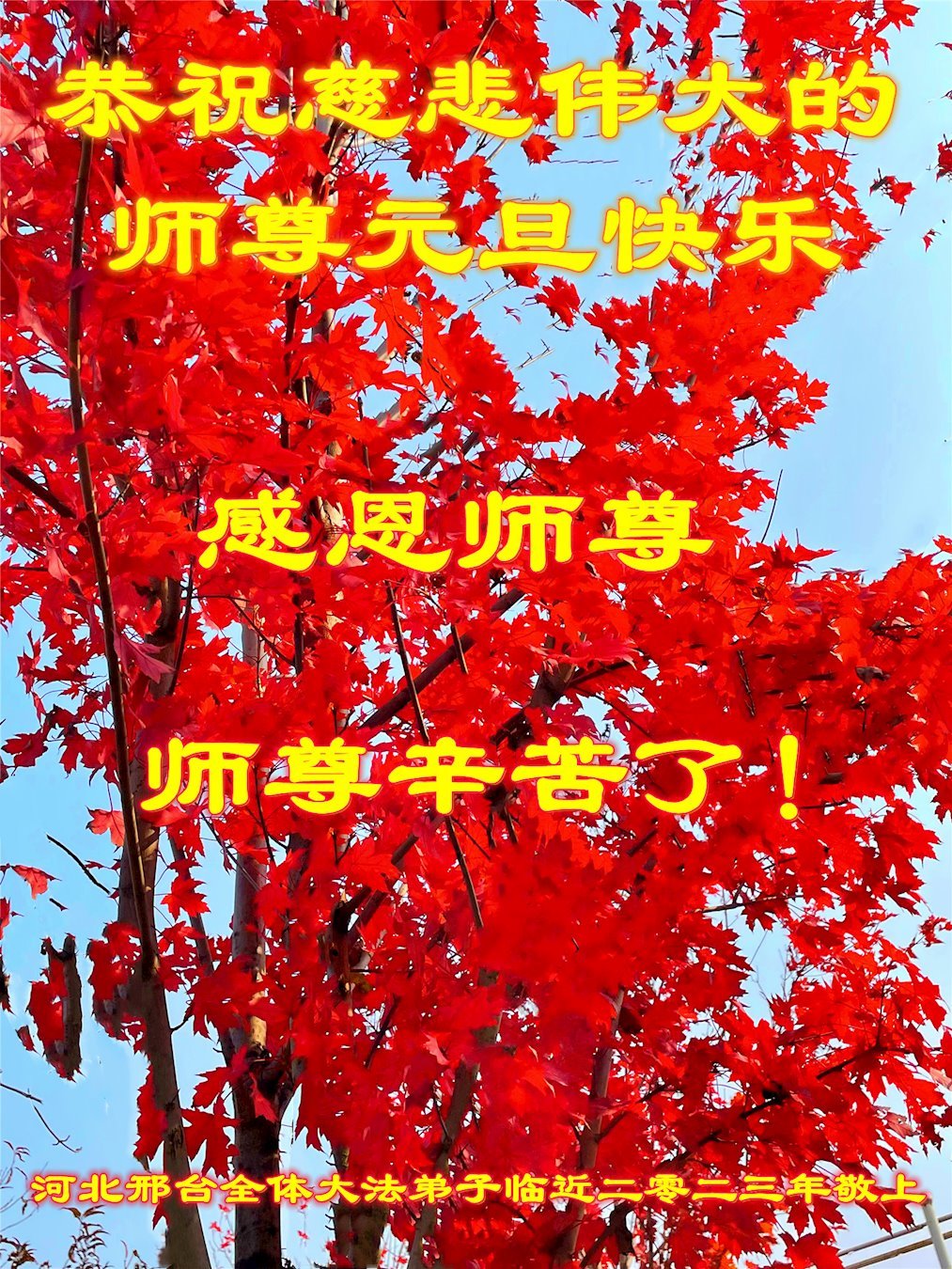 弟子叩谢师恩 二零二二年十二月二十七日 河北省邢台市沙河市全体大法弟子恭祝慈悲伟大的师尊元旦快乐!