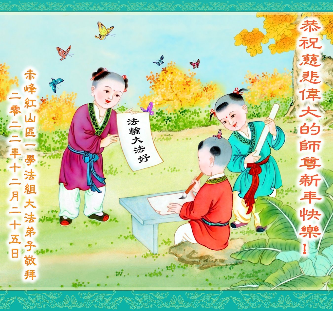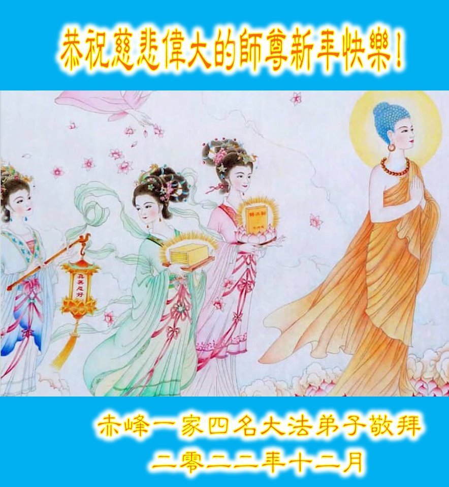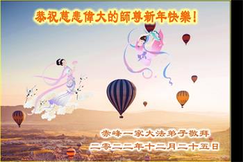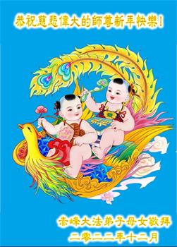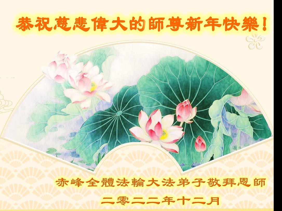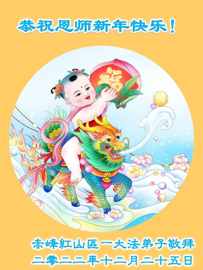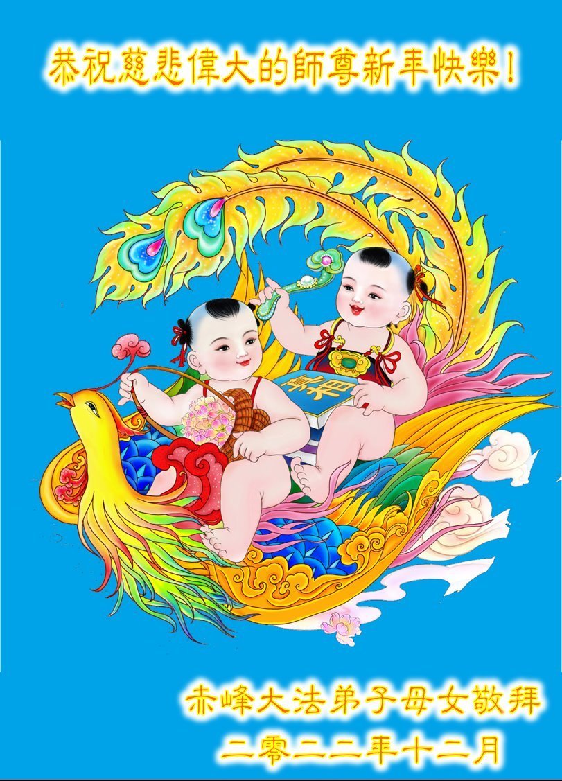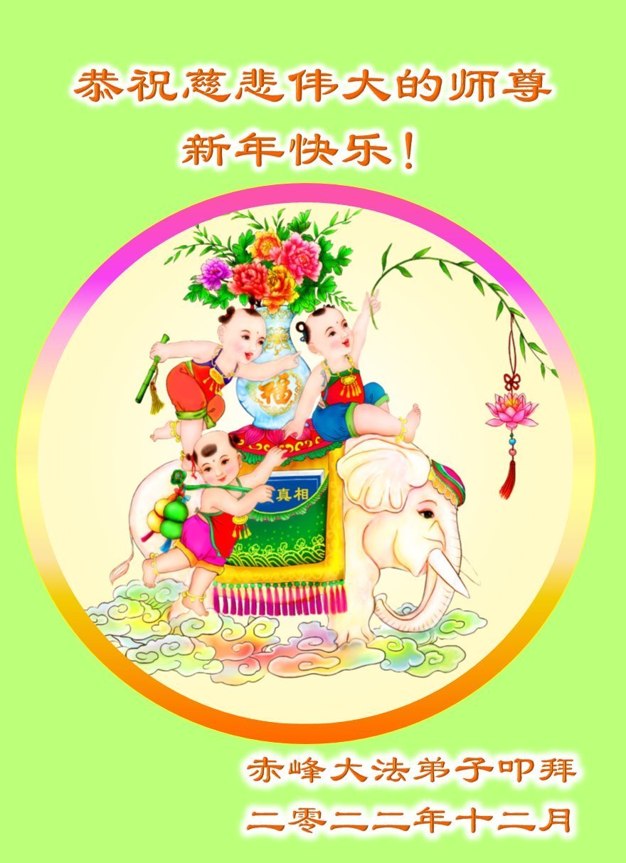 【明慧网二零二二年十二月三十一日】 内蒙古自治区赤峰市大法弟子恭祝慈悲伟大的师尊新年快乐!