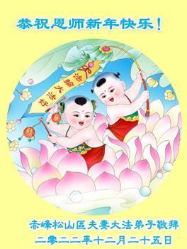 赤峰市松山区一对夫妻大法弟子敬拜 二零二二年十二月二十五日 内蒙古自治区赤峰市红山区一大法弟子恭祝慈悲伟大的师尊新年快乐!