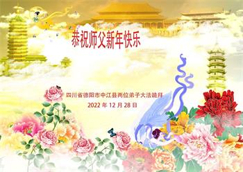 四川省德阳市中江县二位大法弟子恭祝师父新年快乐!