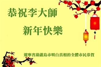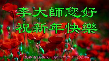 长春家乡百姓李氏一家三口人祝李大师好!祝您新年快乐! 法轮大法好,真善忍好。 辽宁省葫芦岛市明白真相的全体市民恭祝李大师新年快乐!