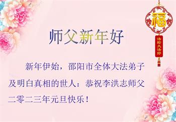 时间转眼来到了二零二三年,在这历史更替的关键时刻,感恩大法师父的慈悲救度,也愿更多的好人放下偏听偏信,快找真相,走出劫难! 湖南省衡阳市祁东县大法弟子一家的全体亲戚恭祝李大师新年快乐!