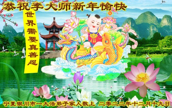 在新的一年到来之际,我们感恩大法师父的救度之恩!也谢谢让我们明白真相的大法弟子们,你们是中国未来的希望,是世界未来的希望。 我们真心盼望大法师父和神韵快点回来。也希望家在大陆身在他乡的大法弟子早日回国与亲人团聚,你们辛苦了,真的辛苦了。祝你们新年快乐!法轮大法好!真善忍好! 宁夏回族自治区银川市一大法弟子家人恭祝李大师新年愉快!