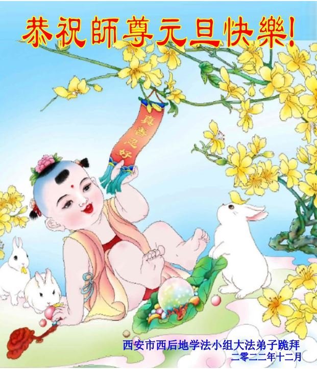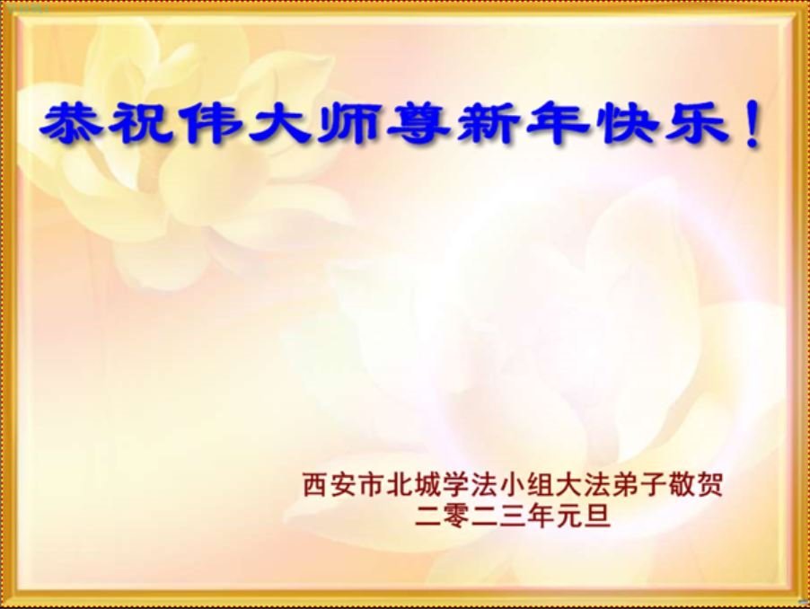 【明慧网二零二二年十二月三十一日】 陕西省西安全体大法弟子恭祝师父新年快乐!