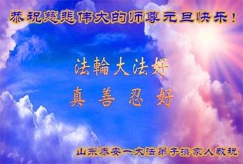 山东泰安大法弟子恭祝慈悲伟大的师尊元旦快乐!