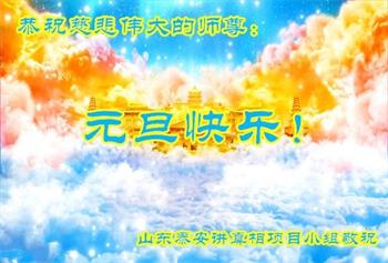 谢谢慈悲伟大的师尊!弟子唯有精進报答师尊的救度之恩。 师尊您辛苦了,谢谢您! 山东省烟台市栖霞市一学法小组大法弟子恭祝师尊元旦快乐!