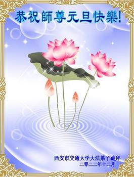 师尊好!师尊辛苦了!弟子想念师尊!疫情快速扩散,大法弟子知道时间紧迫,责任重大。弟子一定不负师尊的慈悲苦度,学好法,做好三件事,证实法,救度众生。惟愿师尊笑! 弟子叩拜师尊! 南京师范大学全体大法弟子敬拜 陕西省西安市交通大学大法弟子恭祝师尊元旦快乐!
