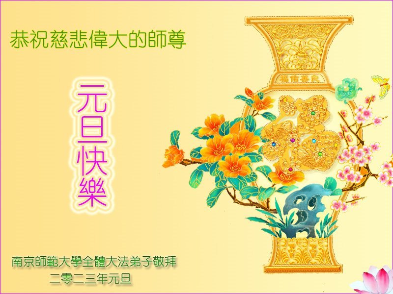 江苏省南京师范大学全体大法弟子恭祝慈悲伟大的师尊元旦快乐!