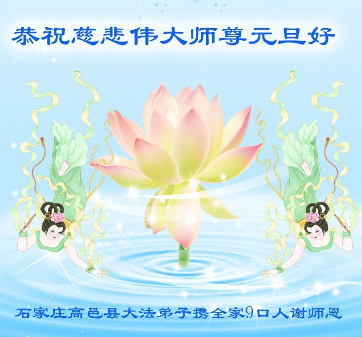 河北省石家庄市平山县一大法弟子全家恭祝师尊元旦快乐!