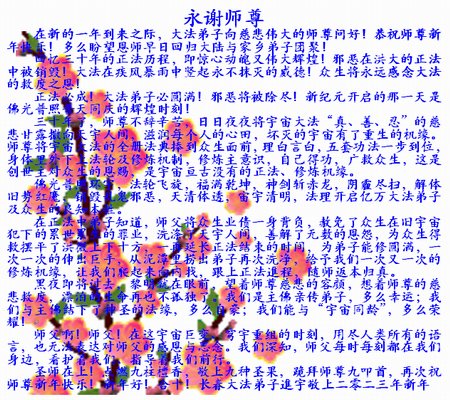 无论在艰难的情况我们从不停止救人,绝不配合邪恶。请师尊放心。 吉林省长春大法弟子恭祝师尊新年快乐!