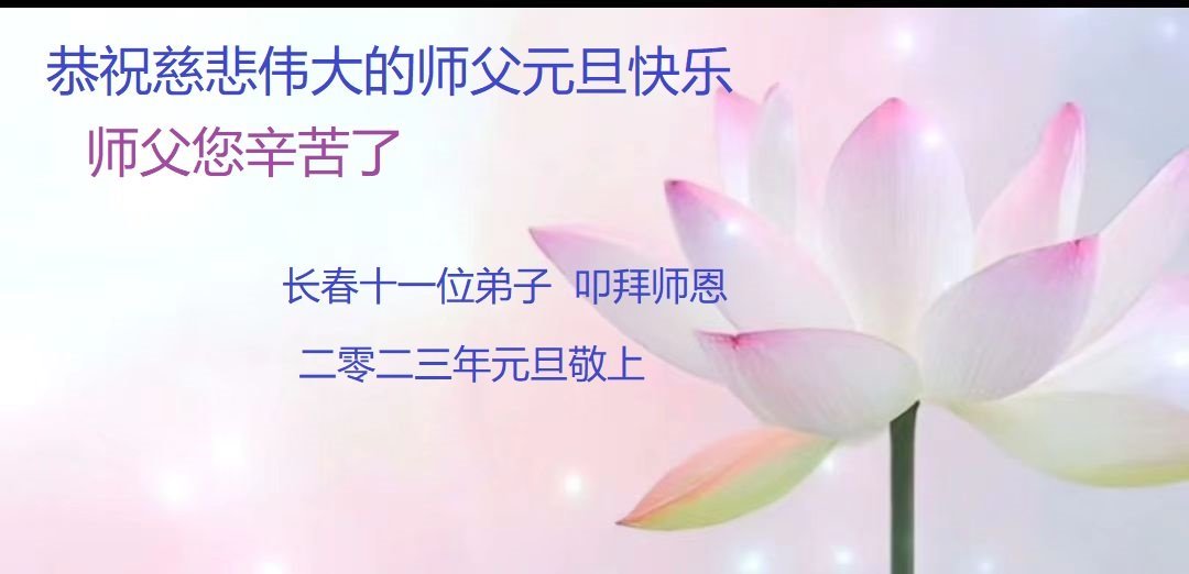 祝师父2023年新年快乐!在新的一年里,弟子会好好学法,同化法,多救人! 合十 长春一大法弟子敬上 2022年12月27日 吉林省长春卫星路、繁荣路大法弟子恭祝师尊2023新年快乐!