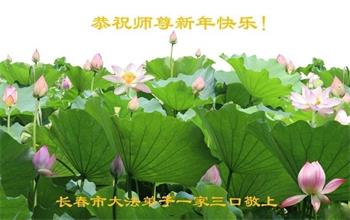 长春大法弟子敬上 吉林省长春市大法弟子一家三口恭祝师尊新年快乐!