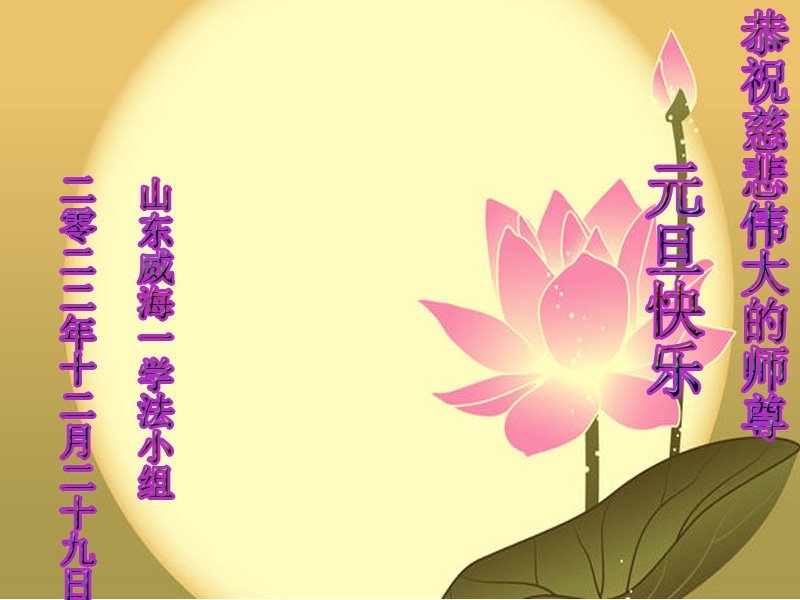 感谢师尊慈悲救度洪恩! 山东省威海市石岛镇一大法弟子恭祝慈悲伟大的师尊新年快乐!