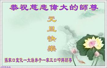 大法弟子敬上 2022年12月30日 河北省张家口宣化一大法弟子一家三口恭祝慈悲伟大的师尊元旦快乐!
