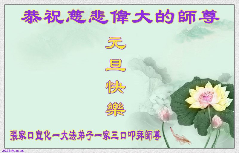 二零二三年元旦快要到了,弟子恭祝师尊新年快乐!感恩师尊慈悲救度!感恩师尊对弟子家人的慈悲救度! 弟子在新的一年里,会做的更好。学好法,修好自己,在矛盾中找自己,提高自己,抓紧时间,救人不怠。惟愿师尊笑!洪恩浩荡!得救的众生感恩师尊! 叩拜师尊!合十 河北张家口市宣化区一大法弟子恭祝师尊新年快乐!