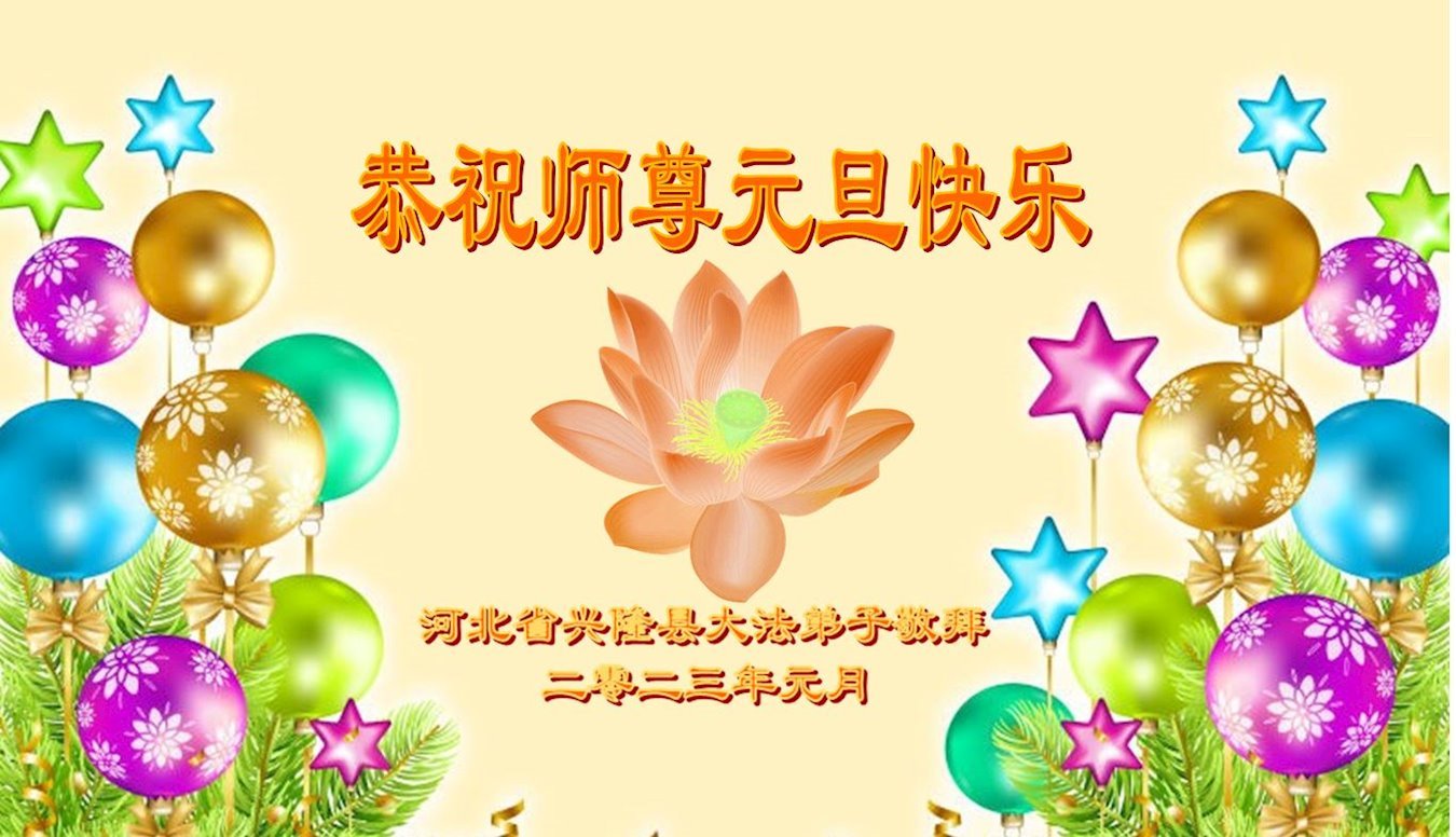 感谢师尊慈悲救度!师尊您辛苦了!恭祝师尊元旦快乐! 2022年12月29日 河北省承德市兴隆县大法弟子恭祝师尊元旦快乐!