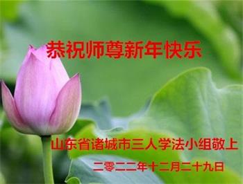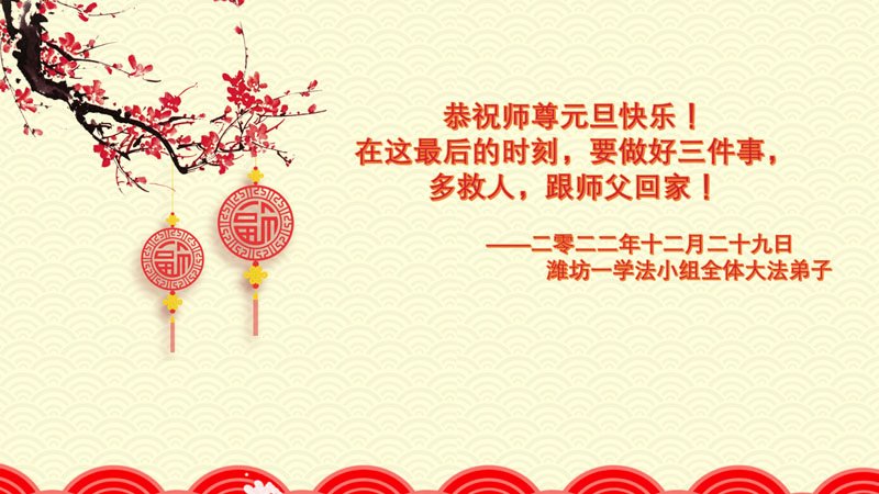 【明慧网二零二二年十二月三十一日】 山东省潍坊市临朐县全体大法弟子恭祝慈悲伟大的师尊新年快乐!