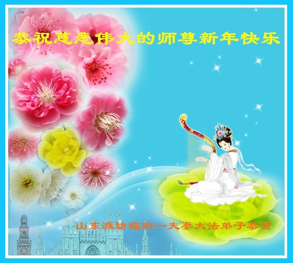 山东省潍坊市临朐县一对夫妻大法弟子恭祝慈悲伟大的师尊新年快乐!