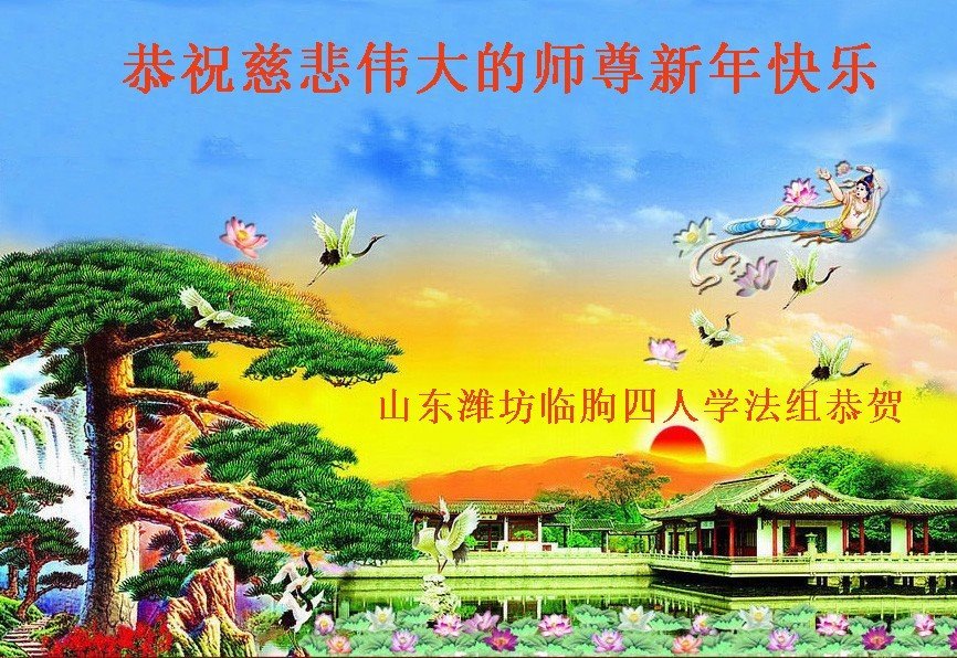 山东省潍坊市临朐县四人学法小组大法弟子恭祝慈悲伟大的师尊新年快乐!