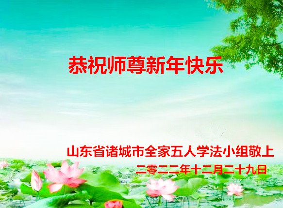 山东省潍坊市诸城市全家五人学法小组大法弟子恭祝师尊新年快乐!