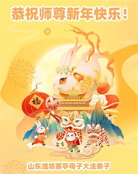 在师尊的慈悲保护下,我们又迎来了新的一年,在这里谨代表身边的几位同修,恭祝师尊新年好,感恩您的慈悲救度,我们都有着同样的心愿,祈盼着与您相见的那一天! 山东省潍坊市临朐县大法弟子恭祝伟大的师尊新年快乐!弟子叩拜师尊!