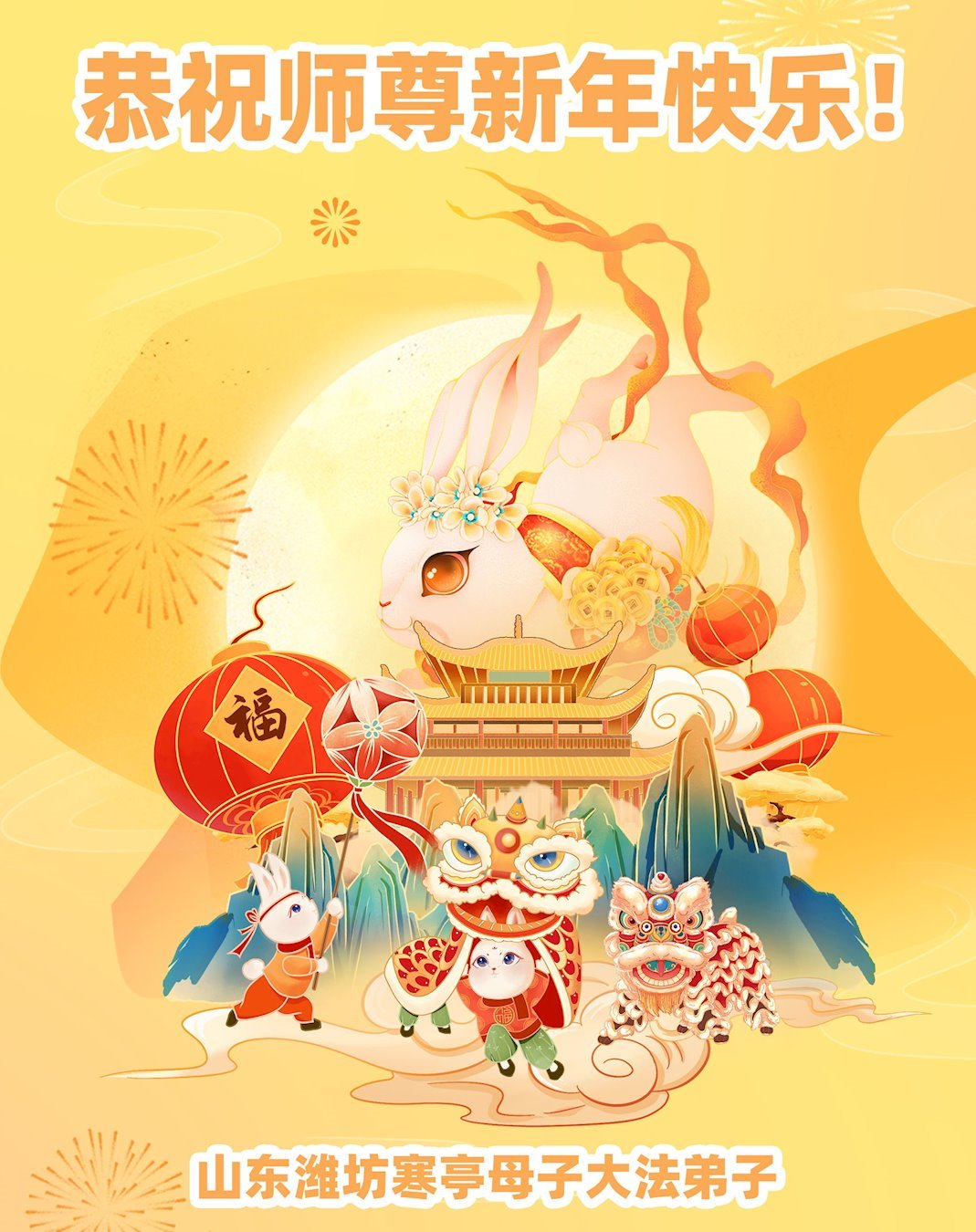 山东省潍坊市高密市全体大法弟子恭祝慈悲伟大的师尊新年快乐!