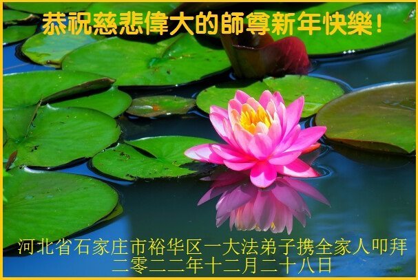 弟子们深感师父的慈悲看护,感恩师父的加持。弟子们决心加强实修,做好三件事,跟师父回家。 河北省石家庄市裕华区一大法弟子携全家人恭祝慈悲伟大的师尊新年快乐!