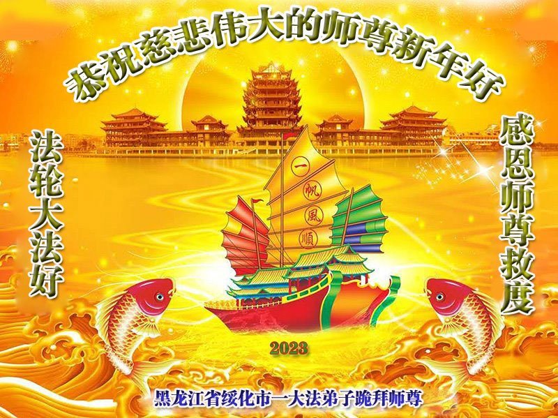 大陆大法弟子十分想念您。值此2023年元旦到来之际,弟子跪拜师父,恭祝师父新年快乐! 黑龙江东宁市一大法弟子及全家人恭祝慈悲伟大的师尊新年好!师尊您辛苦了!弟子叩拜师尊!