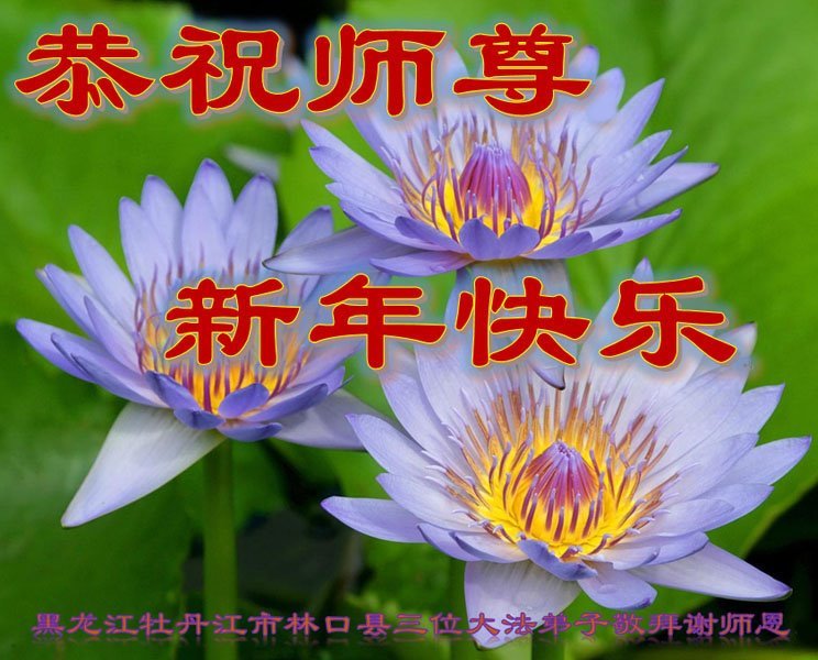 黑龙江省牡丹江市林口县三位大法弟子恭祝师尊新年快乐!