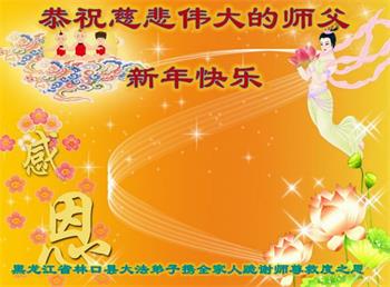 感谢师父救度我们全家!弟子只有精進实修,多救人,报师恩! 黑龙江省大兴安岭地区塔河县一大法弟子恭祝师尊新年快乐!