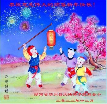 作为一个生命,能成为大法师父的弟子,是多么难得的无上圣缘!感恩师尊的时刻保护与慈悲点悟!在新的一年里,弟子一定更加精进实修,找出自己修炼中的不足,做好三件事,不负师尊苦心救度。 湖南省靖州县大法弟子跪拜合十 吉林省延边州延吉市大法弟子恭祝慈悲伟大的师尊新年快乐!