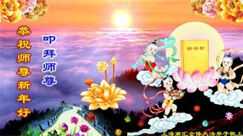 感恩师尊慈悲救度,师恩难报! 安徽淮北大法弟子及明真相得福报的家人叩拜师尊! 南京建邺区一学法小组大法弟子携明白真相的家人恭祝慈悲伟大的师父新年快乐!