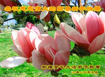 慈悲伟大的师父啊,在这新年来临的时刻,生活在国内北方的大法弟子真的想念您!在我消沉的时候,是您点醒了我;在我失落的时候,是您鼓励着我;在我懈怠的时候,是您给了我精进的源泉。 慈悲的师父,是您牵着弟子的手走过了二十三载的血雨腥风,弟子更加坚信师父、坚信大法。我要修好自己,带好三位大法小弟子,永远按着师父指引的路精进前行! 弟子在小兴安岭红松的故乡恭祝师尊新年快乐! 新疆维吾尔自治区奎屯大法弟子恭祝慈悲伟大的师尊新年快乐!