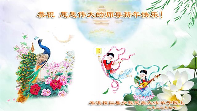 我们是回族、满族、锡伯族、维吾尔族、朝鲜族等等少数民族大法弟子,当我们修炼了法轮大法,才知道我们下世前的洪愿——广传真相,助师普度众生。 师尊把我们从地狱捞起洗净,使我们有幸成为大法弟子,赋予了我们全新的生命,让我们有可能回到自己的天国。这是我们的荣耀与责任。师尊给弟子的太多太多,慈悲伟大的师尊,您辛苦了!我们无法表达对师尊的感恩!弟子们会踏踏实实修炼,走好修炼路,多学法,做好三件事,不辜负师尊的期望。 北京少数民族大法弟子跪拜 甘肃省临夏回族自治州永靖县大法弟子恭祝师尊新年快乐!