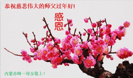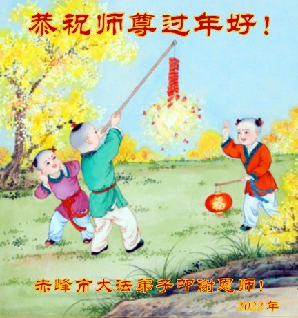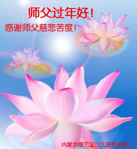 恭祝慈悲伟大的师尊新年快乐!在新的一年里,弟子要做好三件事,特别在救度众生中突破怕心,多救人。 内蒙古赤峰市大法弟子恭祝师尊过年好!