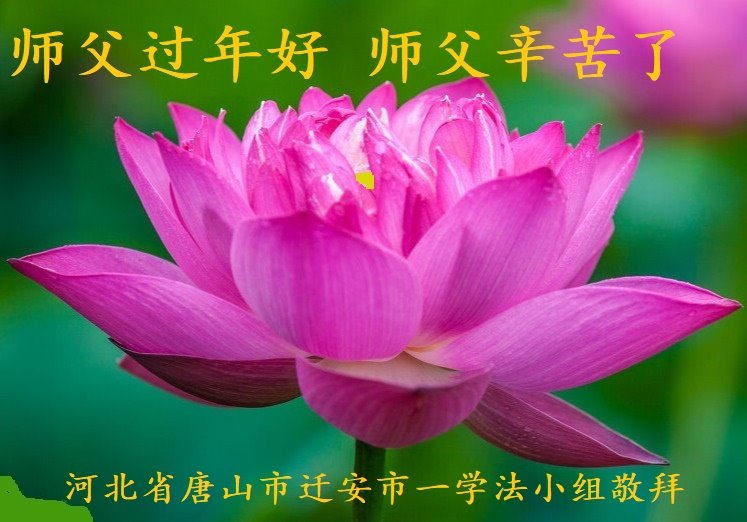 祝师父新年快乐!尊敬的师父您辛苦了!感谢师父慈悲救度!在新的一年里,弟子会多学法,精進实修,做好三件事。 弟子及全家人恭祝师父新年好! 河北省唐山市丰南区全体大法弟子恭祝师尊新年快乐!师尊辛苦了!