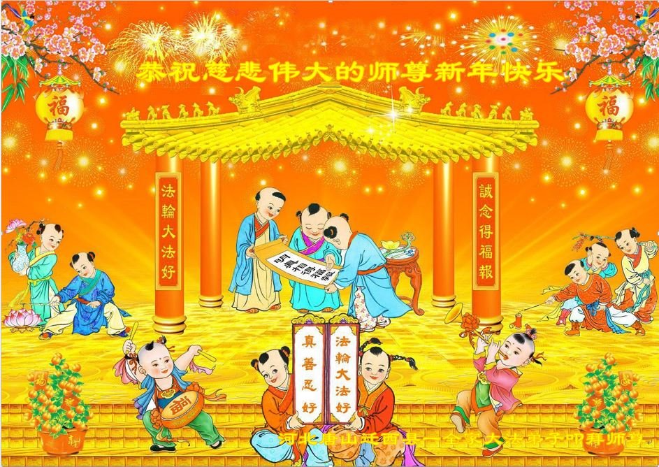 师父过年好!唐山市丰润区沙流河村全体大法弟子想念您,祝您新年快乐! 弟子一定珍惜最后的时刻,修好自己多救人,不负师父浩荡洪恩,盼与师父早日团圆! 唐山市丰润区沙流河村全体大法弟子敬上 河北省唐山市丰润区全体大法弟子恭祝师父新年快乐!